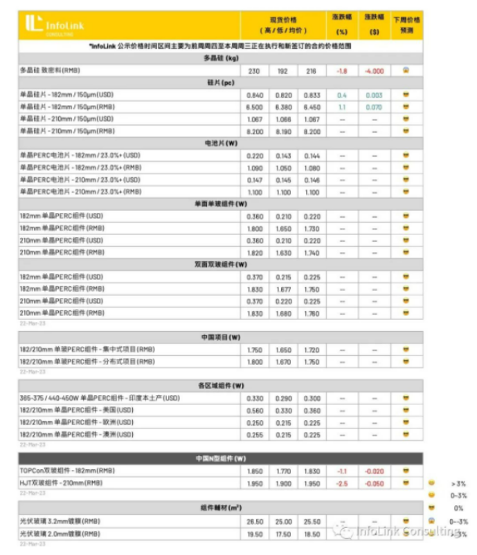 本周光伏供應(yīng)鏈價(jià)格(2023.3.23)