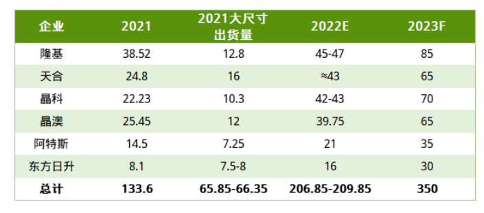 圖:主要組件企業(yè)出貨規(guī)模(單位:GW)
